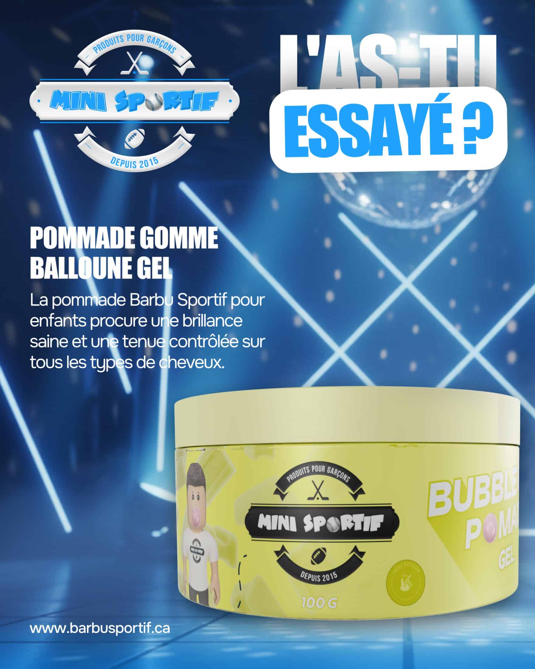 La gomme balloune est, et sera toujours fascinante pour les enfants. Le génial et « best » barber shop Le Barbu Sportif de Joliette a créé une « best » pommade dite Gomme Balloune « Gel » et une autre « Matte », pour une brillance saine et une tenue stable.